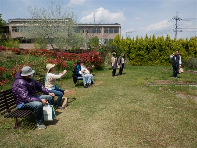 4月24日(金)すみれでは、生活の木 ハーブガーデンギャラリーへ山田先生の春の書遊展の見学に行ってきました。 とても素晴らしくすごい 作品ばかりでした。 ハーブガーデンヒーリングの丘で休憩中 その後、あさひ山展望公園でランチを食べてそこからの展望です。 最後にみんなで記念撮影