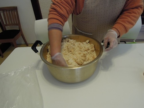 味噌ソムリエのボランティアのご指導のもと今年も味噌作りを行いました。