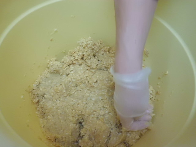 さて、手でカビをつまみだして、味噌生地をととのえます。