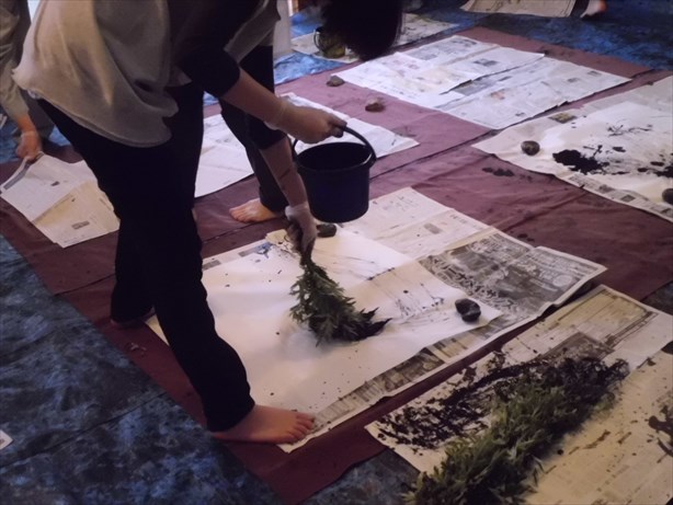 今回は、初めての畳の上でのアート書道でしたが、