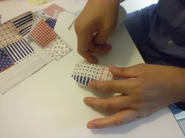 のりを付けている作業