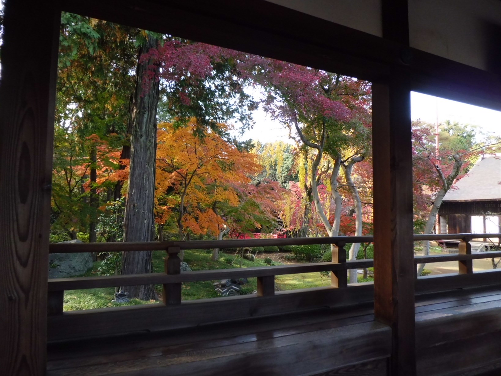 書院から見える庭園の紅葉が綺麗でした