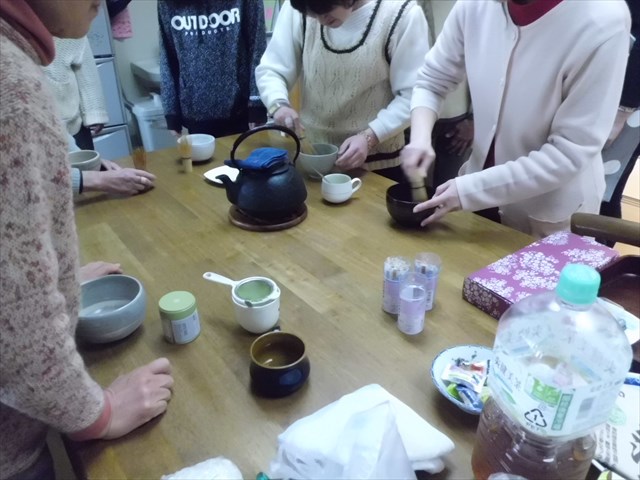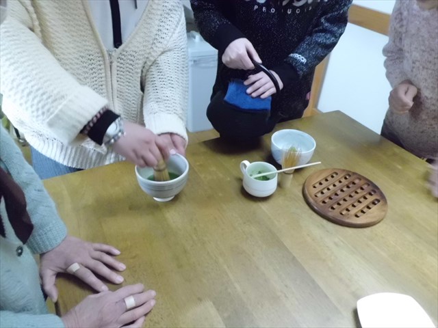 ボランティアの方に教わりながら自分でお茶をたて・・・