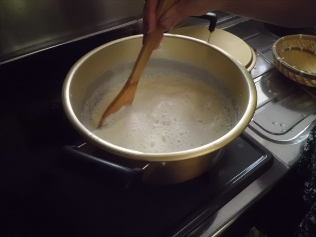 大豆の汁を絞って