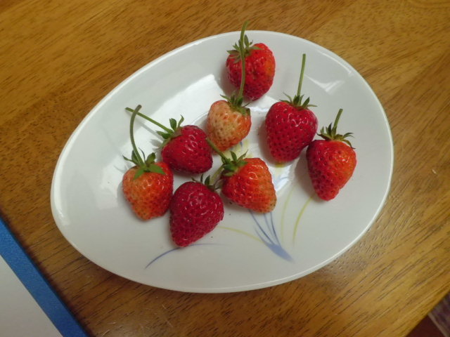 一方、すみれの畑では、いちごができました。