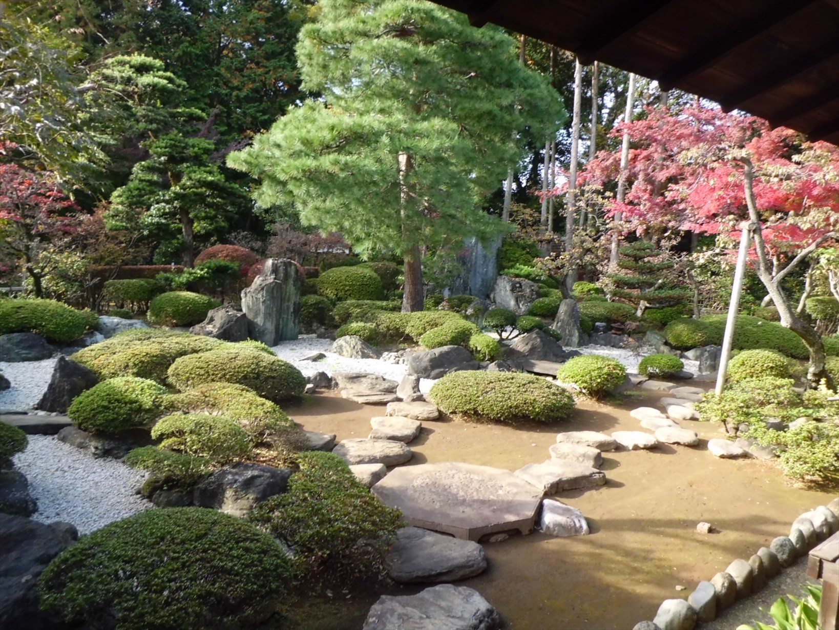 書院から見える庭園の紅葉が綺麗でした