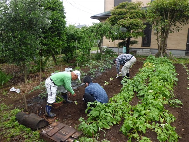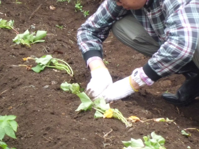 さつま芋は水平植えで苗を植えていきます。収穫が楽しみです
