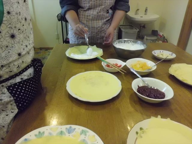 クレープの生地をフライパンで薄く焼く
